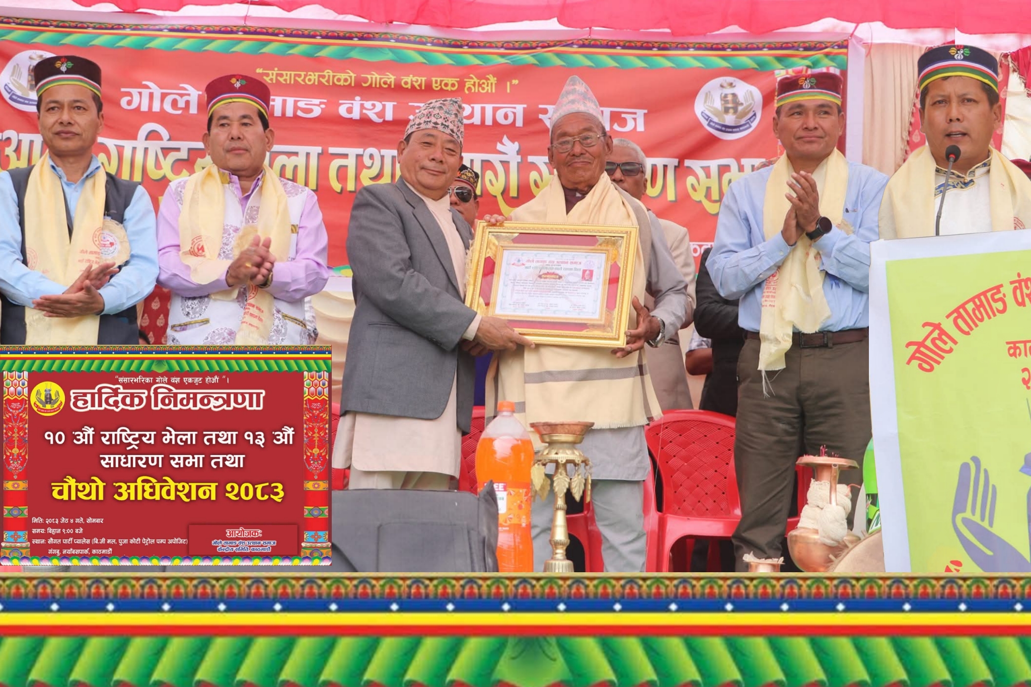 काठमाडौं – संसार भरीको गोलेहरु एक हौ भन्ने मुल नाराका साथ गोले तामाङ बंश उत्थान समाजको १०औ राष्ट्रिय भेला तथा चौथो अधिबेशन १३औ साधारण सभा मिति २०८३ जेठ ४ गते काठमाडौ गोङ्गबु नयाँबसपार्क नजिक रहेको सौगात पार्टी प्यालेसमा भब्य कार्यक्रम गर्ने तयारीमा जुटेको गोले समाज सचिवालयले बताएको छ ।